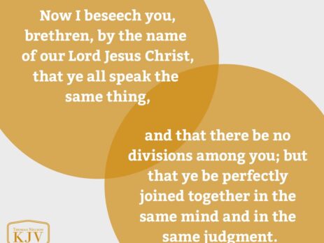 “Now I beseech you, brethren, by the name of our Lord Jesus Christ, that ye all speak the same thing, and that there be no divisions among you; but that ye be perfectly joined together in the same mind and in the same judgment.” 1 Corinthians 1:10